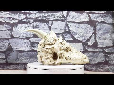 • This Large Dragon Skull Statue is made of designer composite resin, hand painted and polished. Color Tone may vary. The dragon skull sculpture can be used as a wall decor or as a flat surface skull statue.