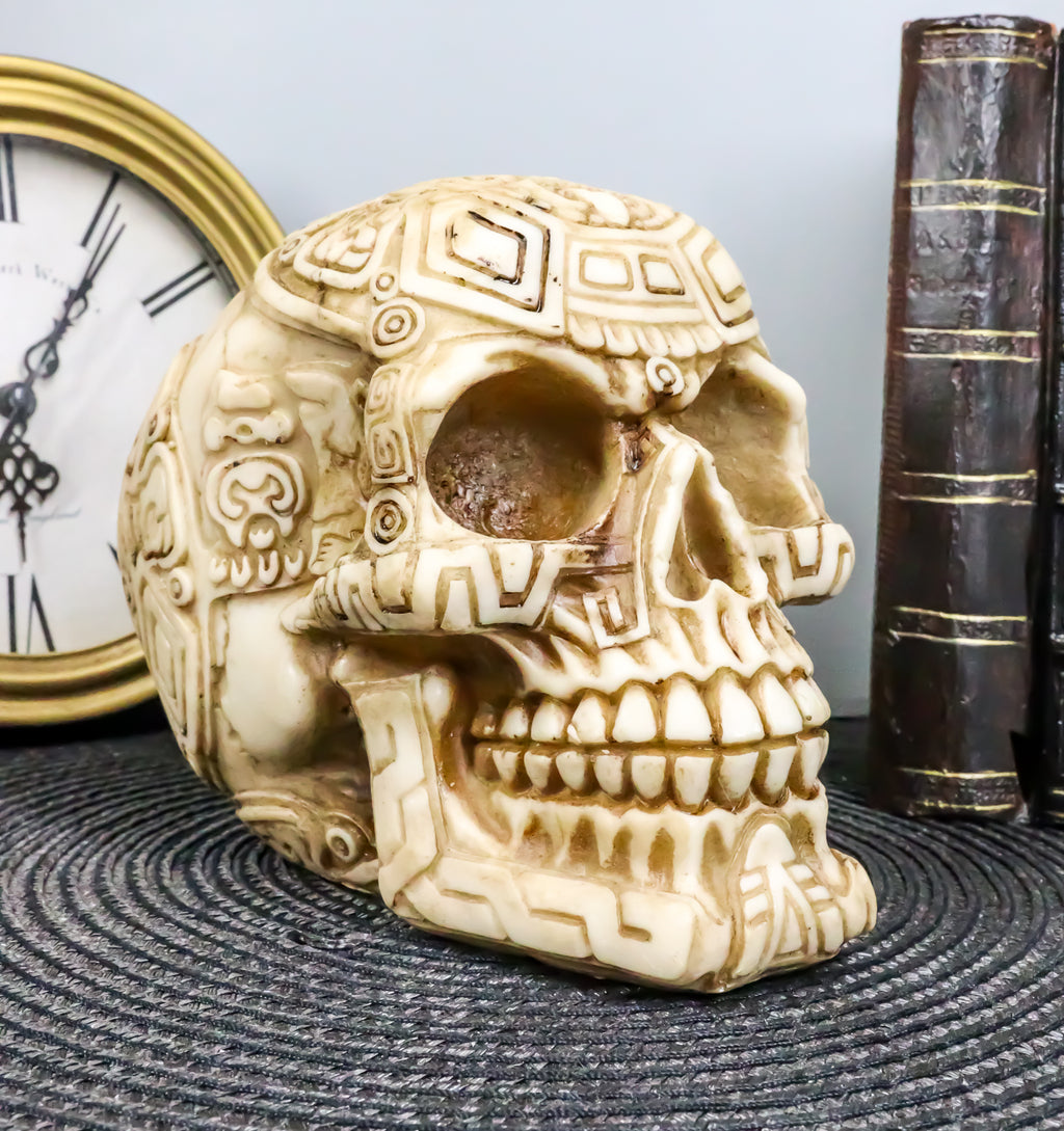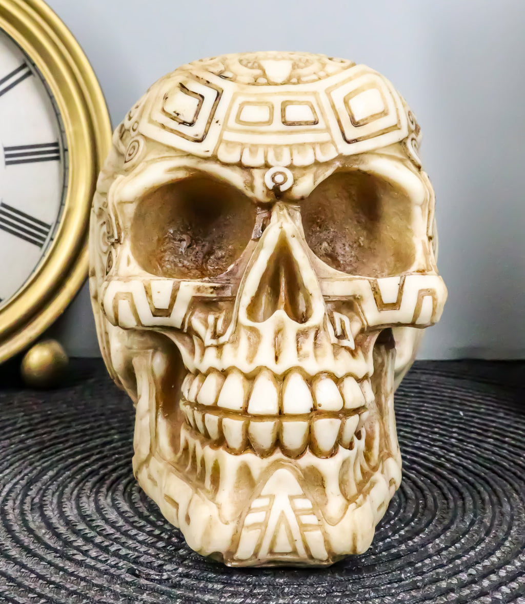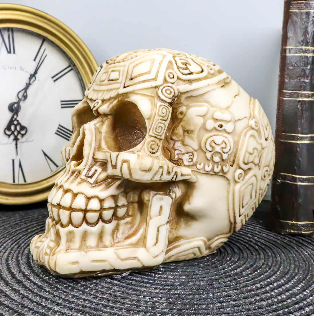 • This Mayan Skull Figurine Collectible is made of composite resin hand painted and polished individually.