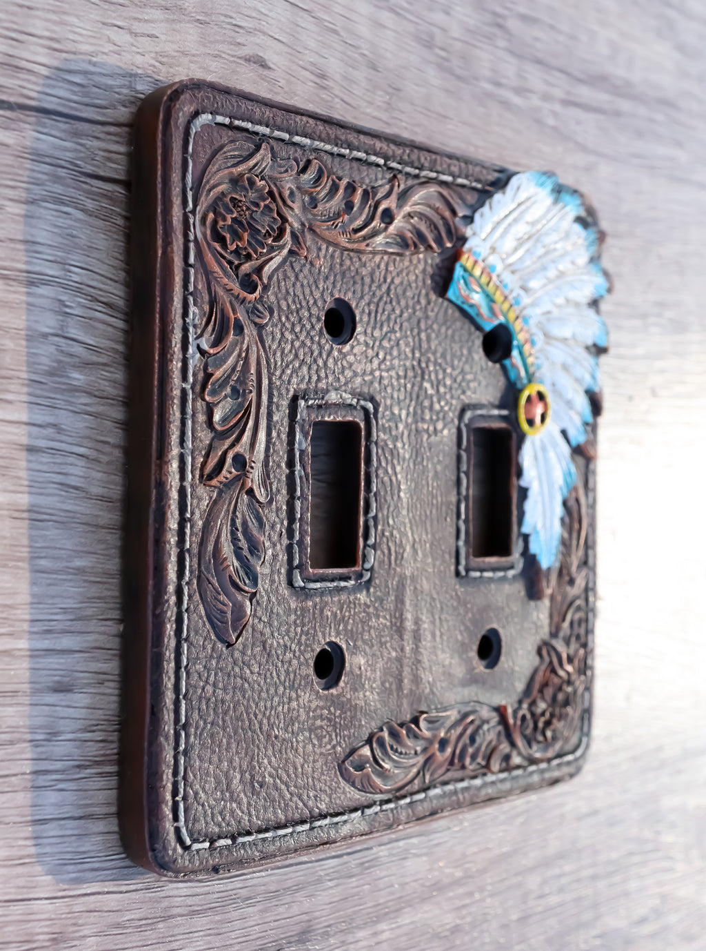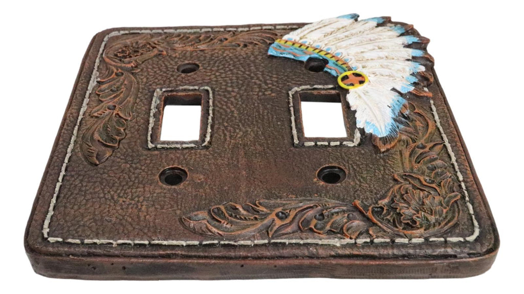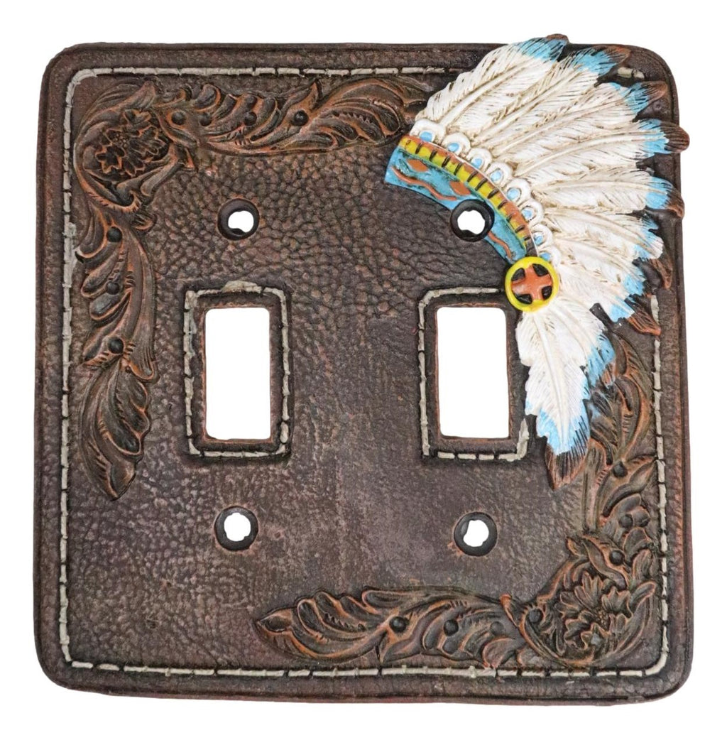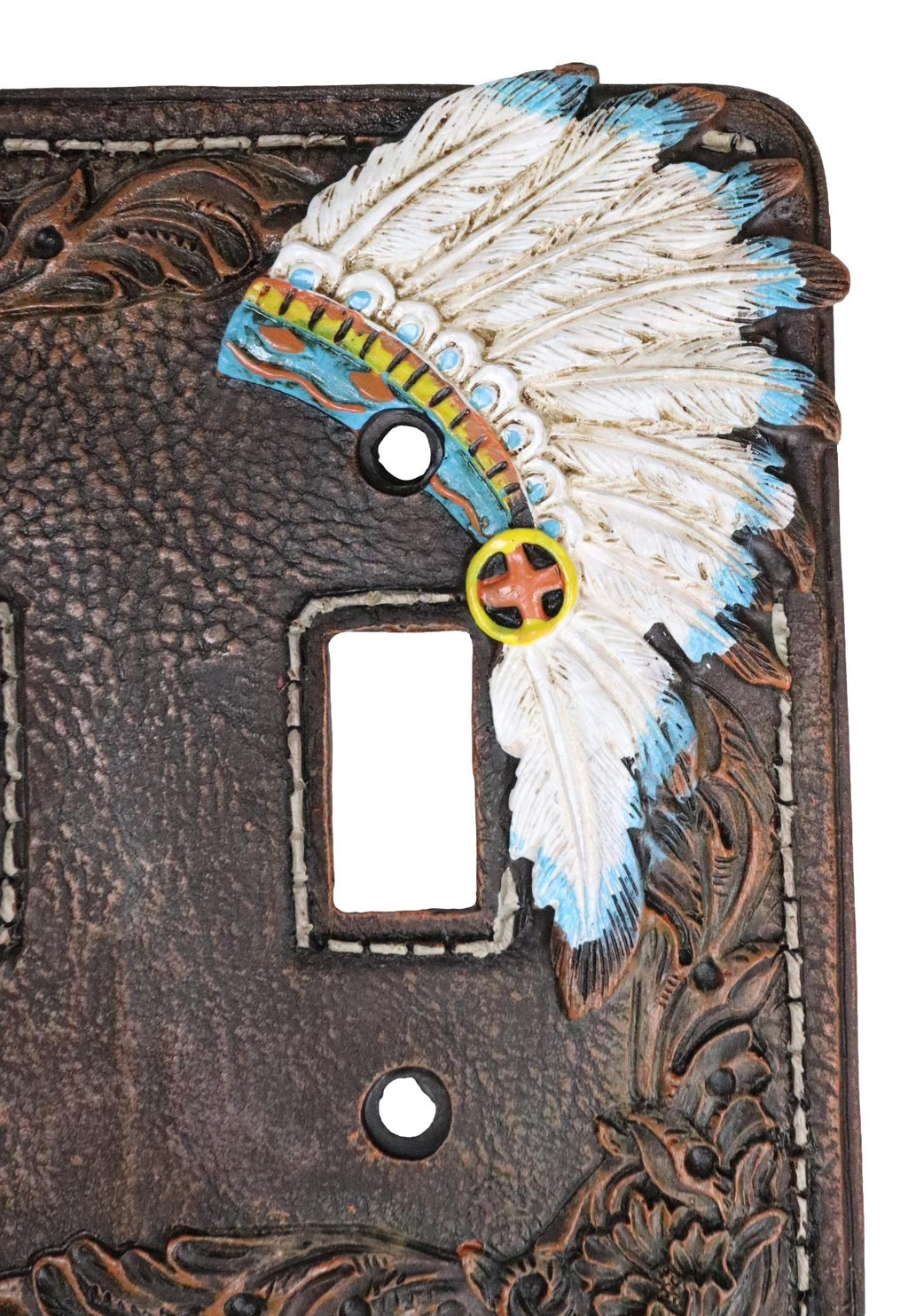 • These Tribal Indian Chief Headdress Cover Plates are made of polyresin, hand painted and polished individually. Colors may vary slightly from photos. Resin material can rack/break if you overtighten.