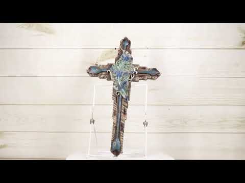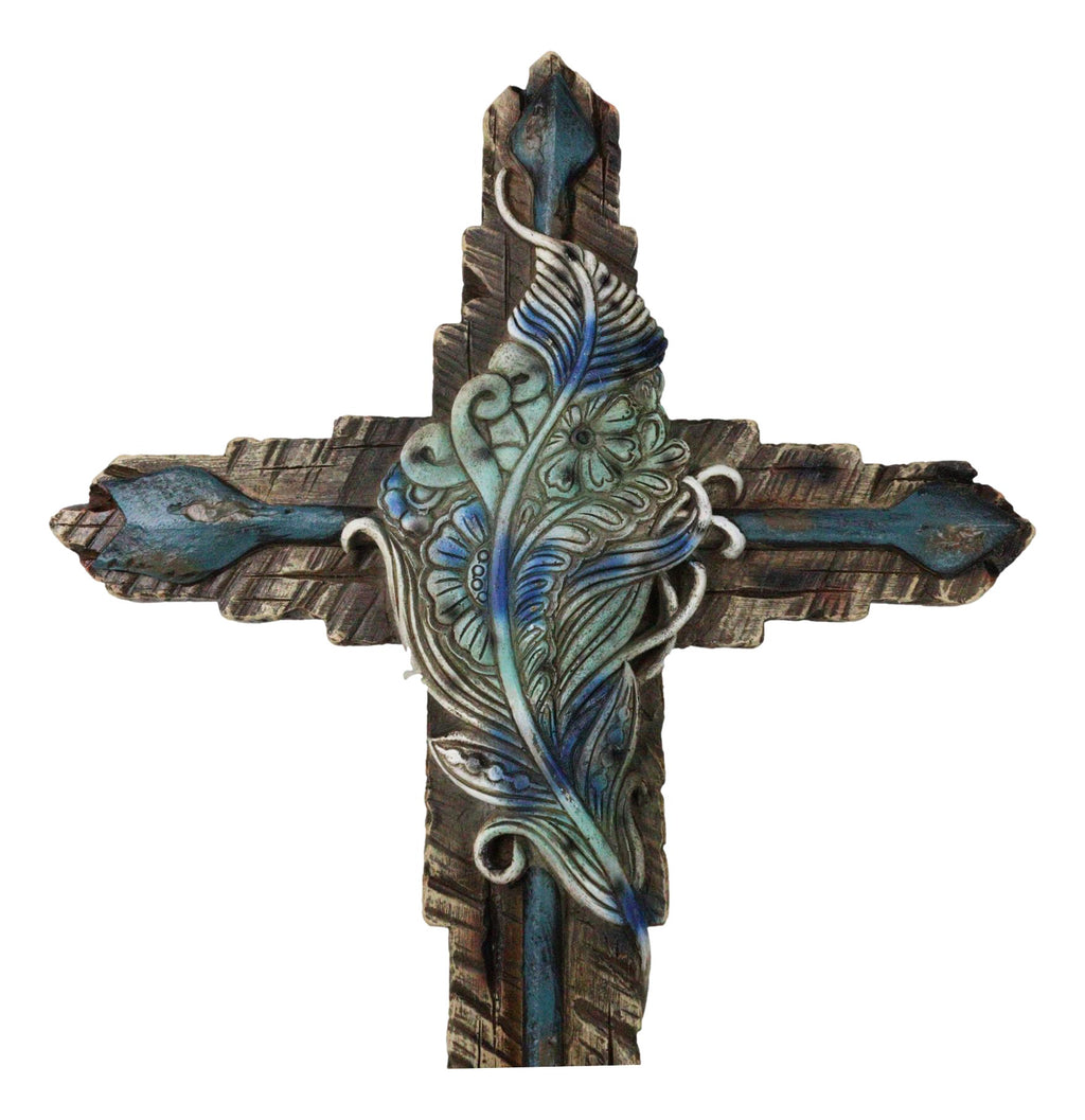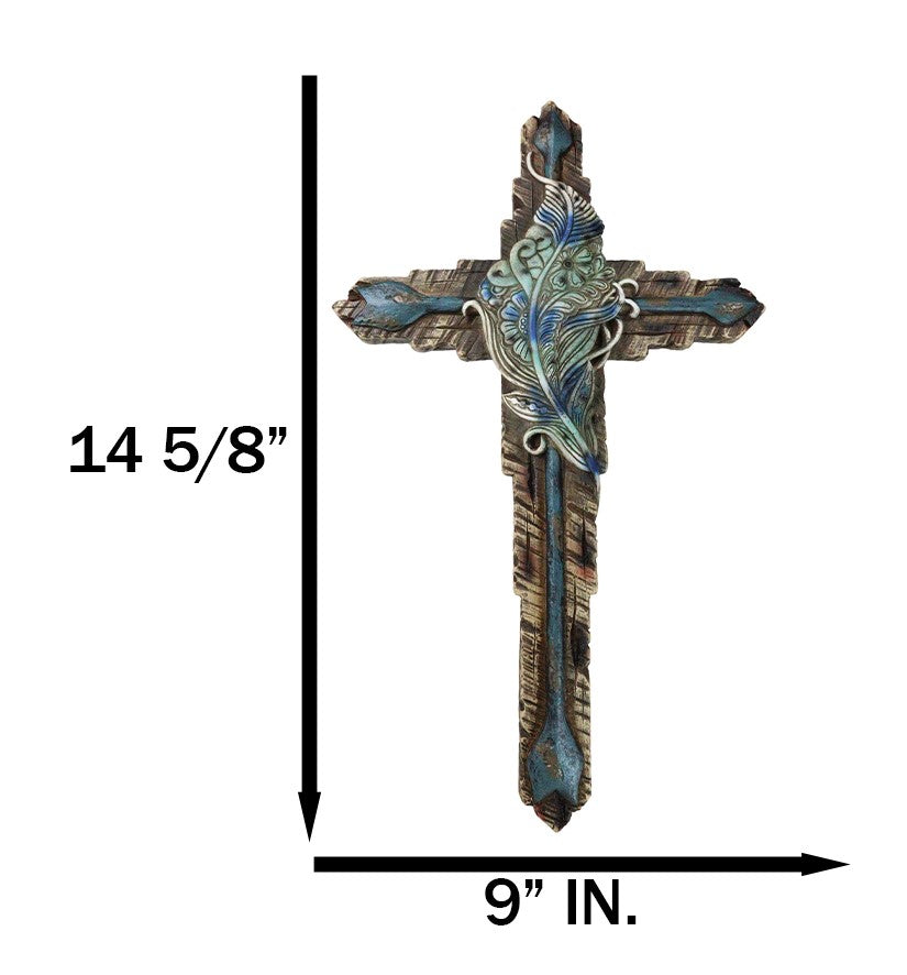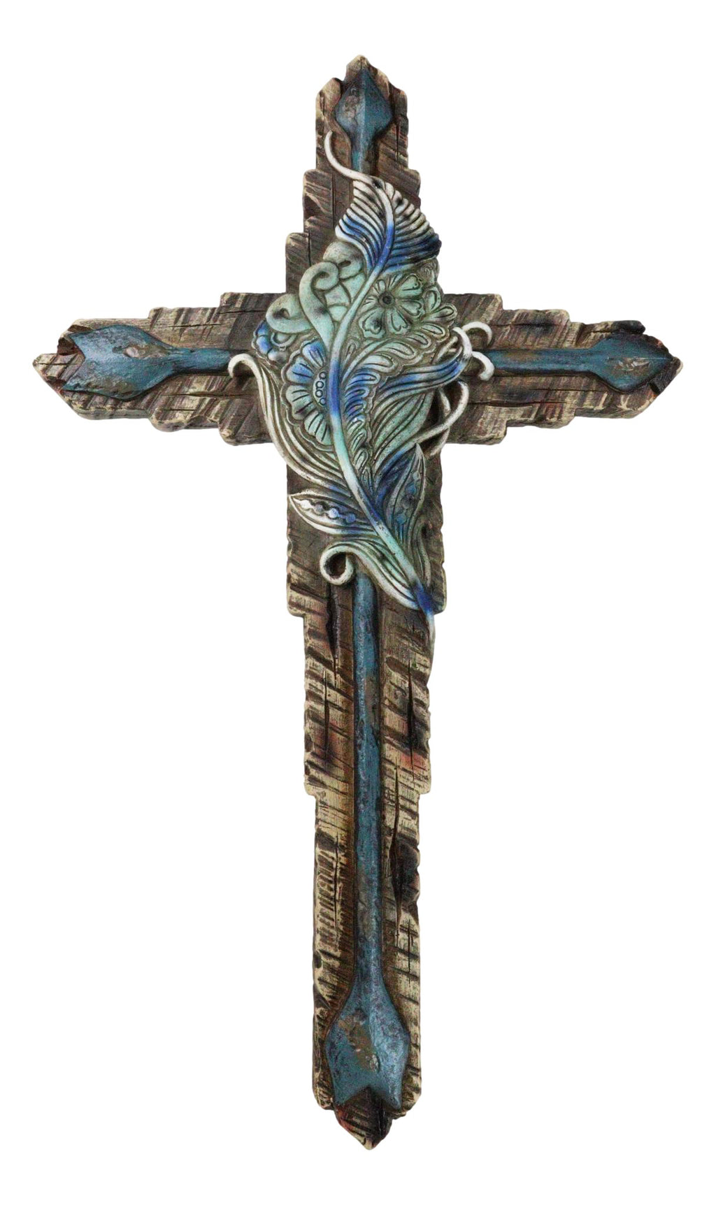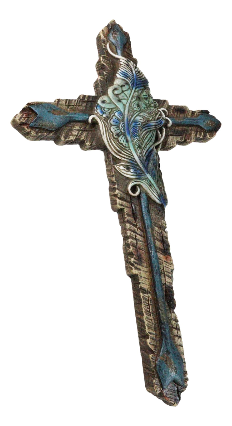 Southwestern Tribal Indian Feather And Turquoise Arrows Faux Wooden Wall Cross