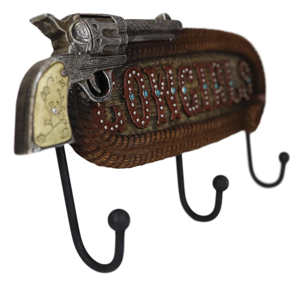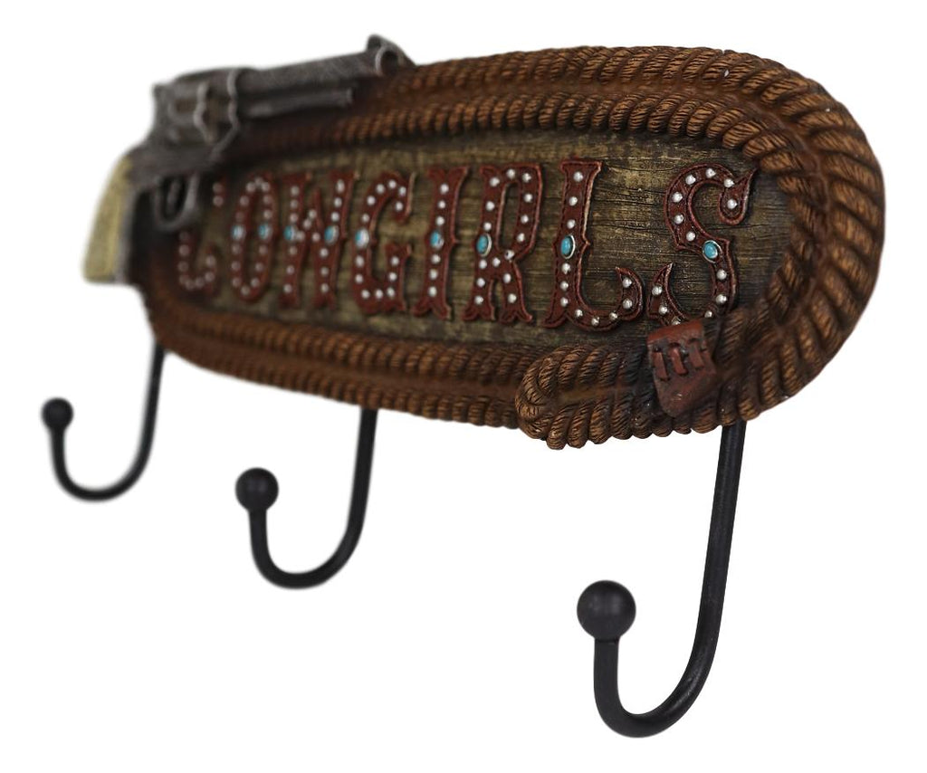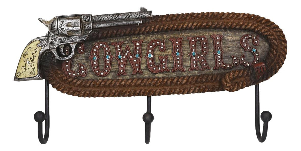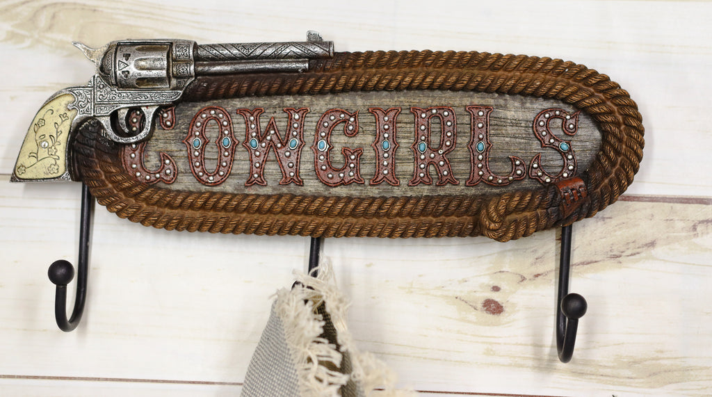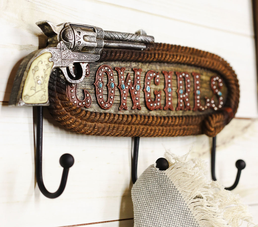 Ebros Cowgirl Sign Braided Ropes Six Shooter Revolver Gun Pistol Wall 3 Peg Coat Hooks