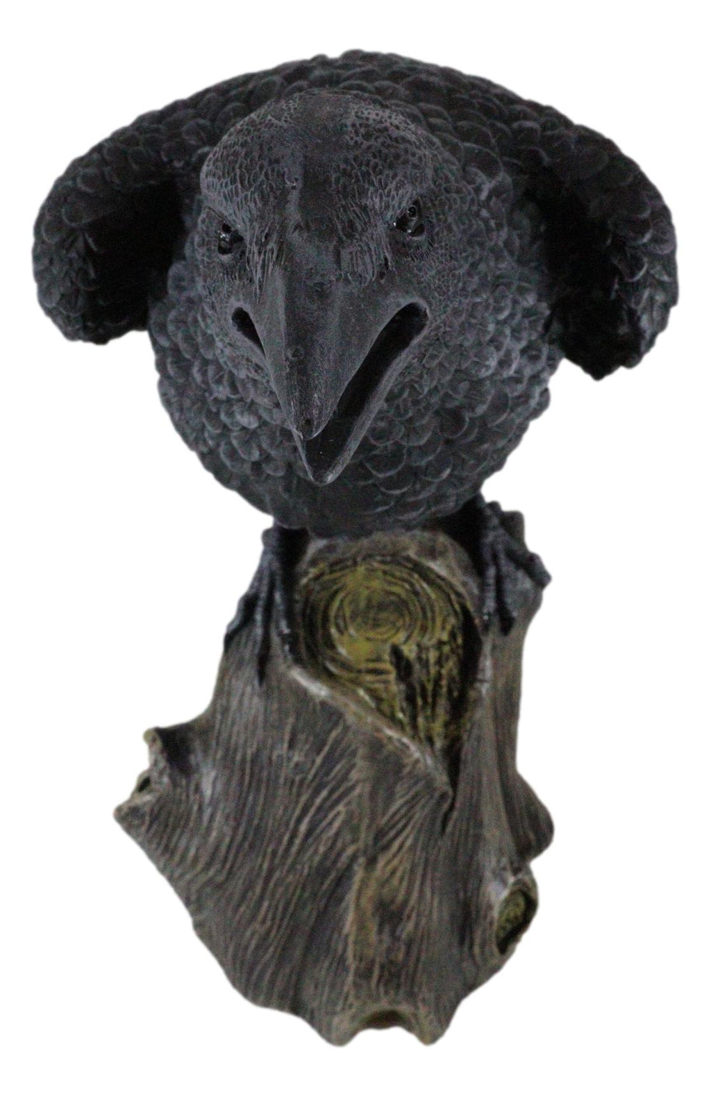 Ebros Large 14" Long Gothic Raven Crow Perching On Tree Stump Statue Figurine