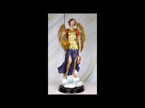• Own this marvelous figurine of the archangel Raphael, the patron saint of Healing and Pennance. Sculpted and handpainted on resin medium, this figurine stands on the heavenly clouds atop a black round base.
