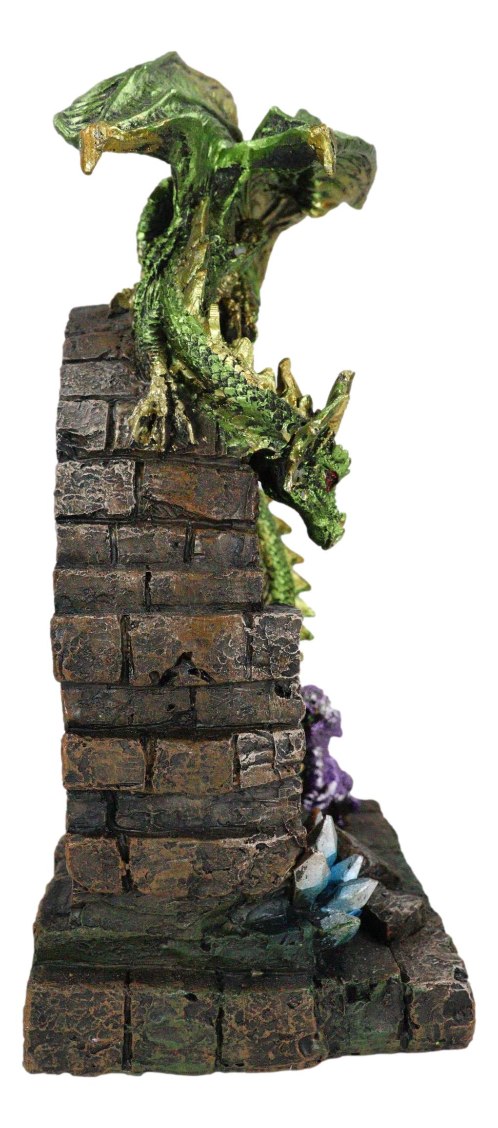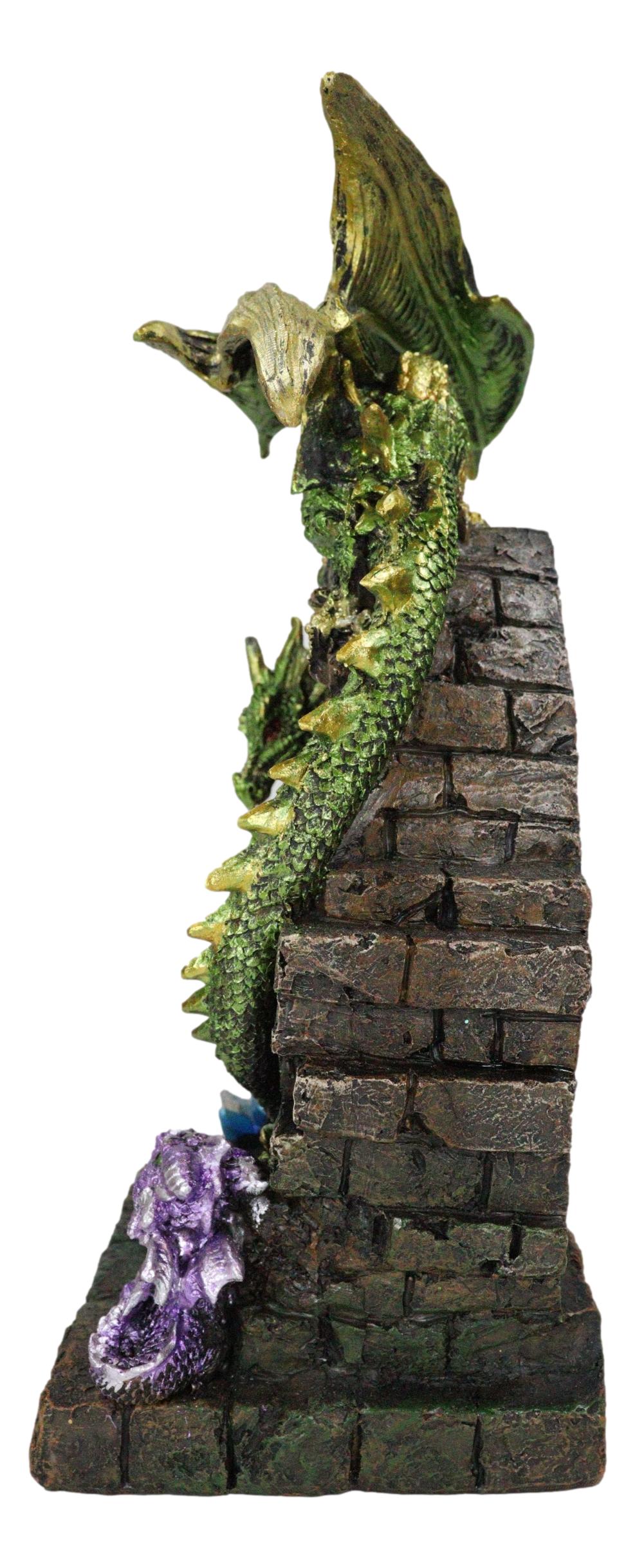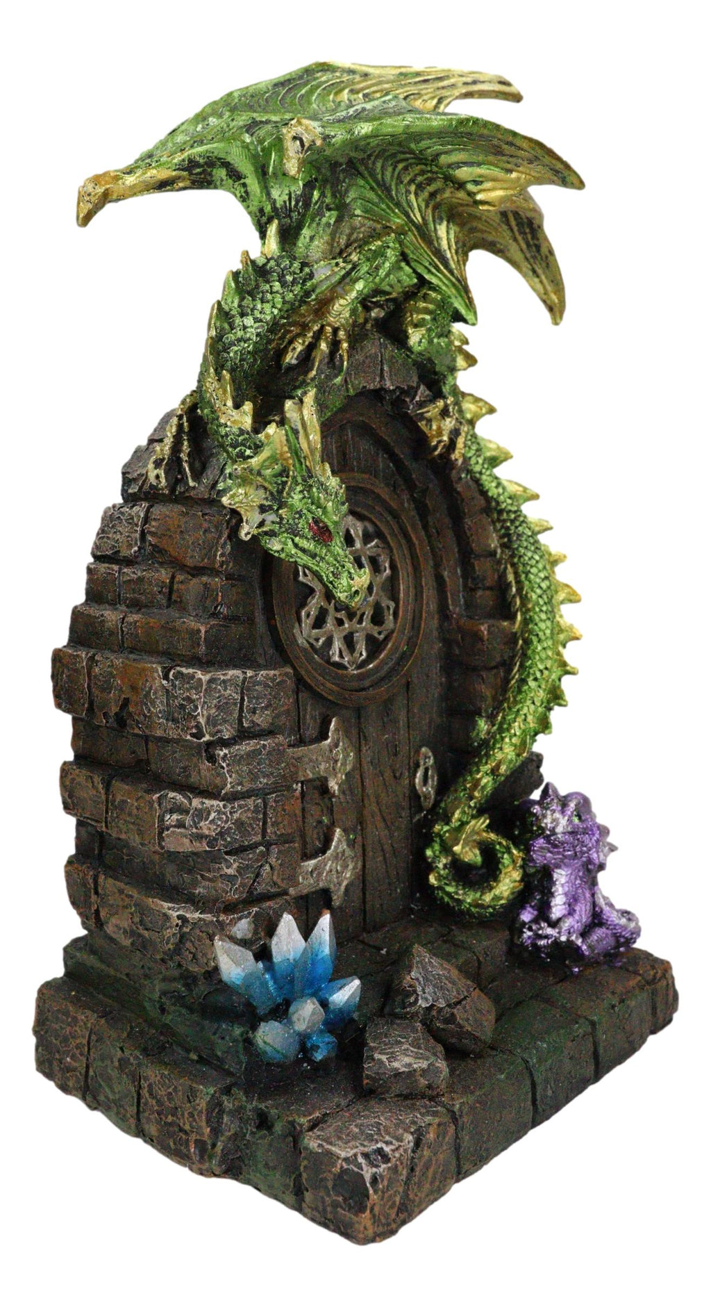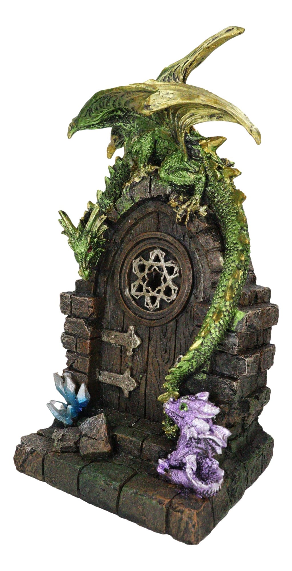 Ebros Fantasy Green Dragon With Wyrmling Perching On Door Arch LED Light Figurine