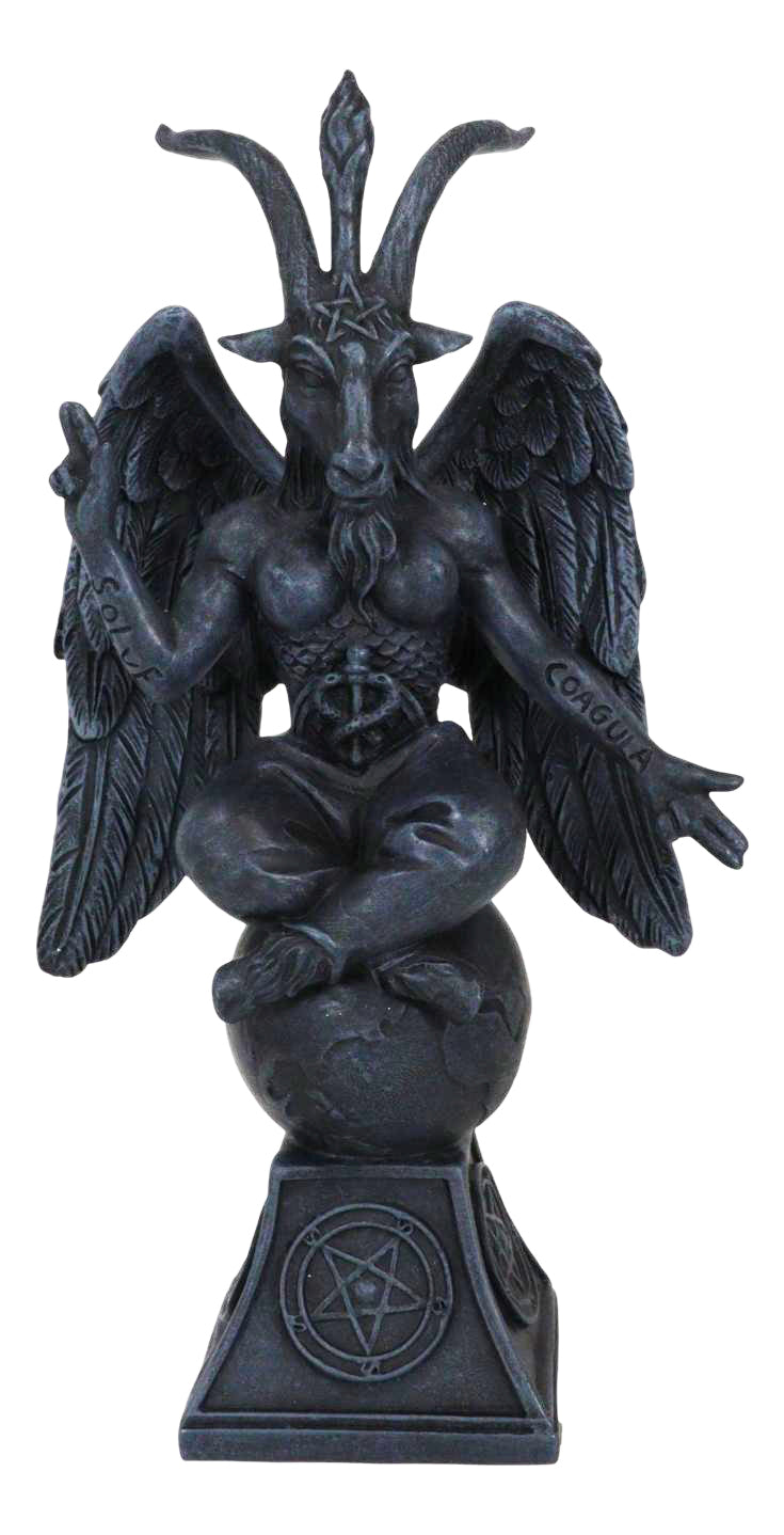 Ebros Faux Stone Grey Sabbatic Goat Idol Baphomet Satan Sigil Pentagram Figurine