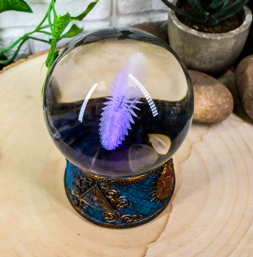 Ebros Freemasonry Illuminati Masonic Square and Compasses LED Glass Ball Figurine