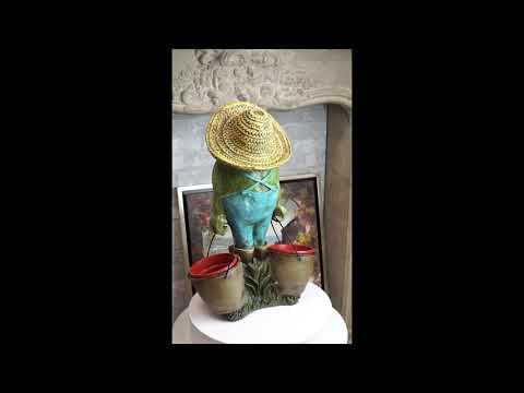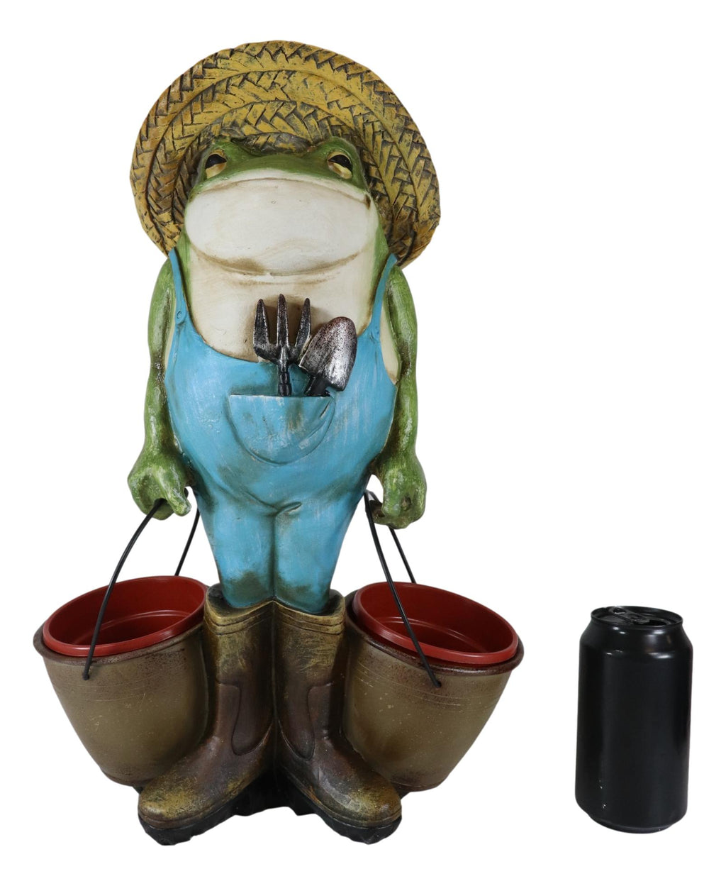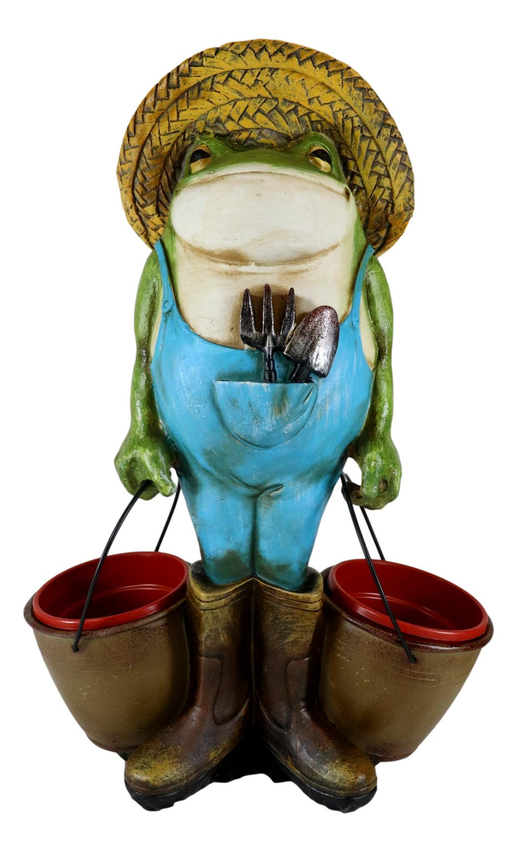 Green Thumb Frog Toad With Trowel and Fork Carrying Pails Planter Vase Statue