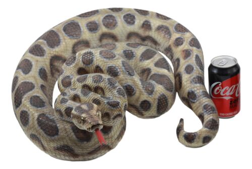 • This Lifelike Python Snake Statue measures 5.75" tall, 16.25" long and 16.5" deep approximately. • This Lifelike Python Snake Statue is made of designer composite resin, expertly hand painted and polished individually. • Owning a python at your residence maybe impossible for most people but owning a realistic looking python that will cast awe and fear on your guests is possible now! Our sculptors and painters have done an amazing job to create lifelike details of the snake from its head to its tail. It will pass as a snake taxidermy! • This is an Ebros Gift exclusive collection. Coke can placed next to the statue is not included with the listing. It is meant to provide size perspective of the item.