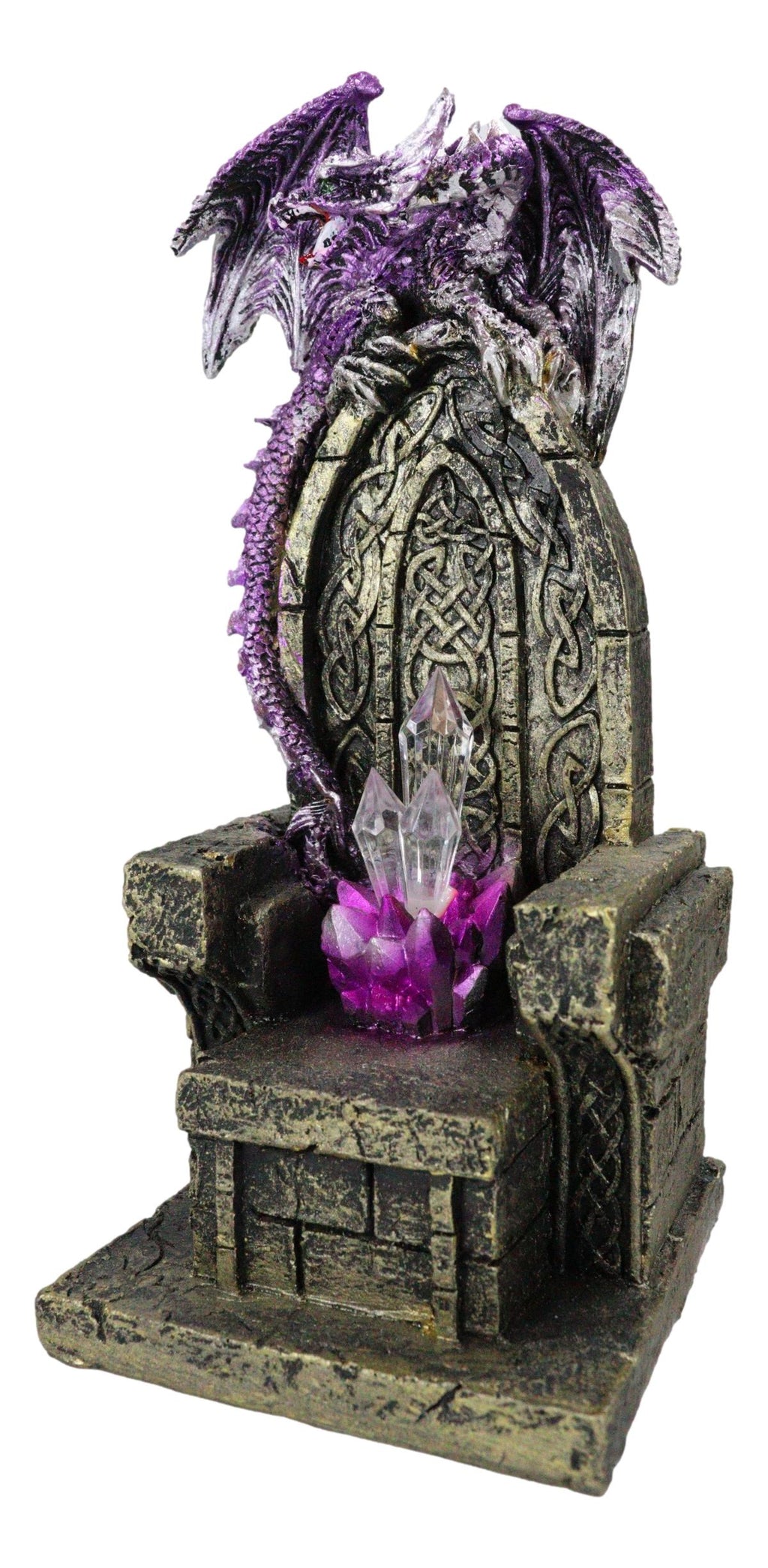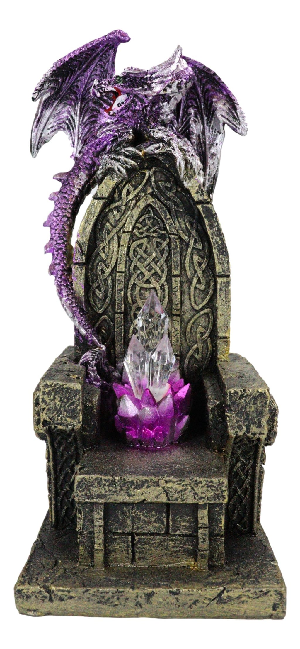 Ebros Medieval Purple Dragon On King's Landing Throne With LED Crystals Figurine