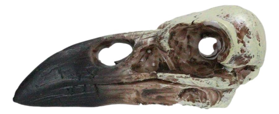 • This Small Reliquary Raven Skull Sculpture is made of polyresin, hand painted and polished individually. • This Small Reliquary Raven Skull Sculpture measures 1" High, 2.25" Long and 1.25" Deep approximately. It weighs about 1 ounce. • To the followers of Mithras, the raven was a symbol of initiation into the deeper mysteries. A sacred talisman to steady the coarse and point the way through life's maelstrom. • Whether you need a skeletal accessory for your costume or wish to wear one every day, the Reliquary Raven Skull Pendant is a great choice. Made from resin, this gothic pendant takes the form of a birds skull. It features a natural coloring with a black beak. The intricately detailed ravens skull has open eye sockets. These sockets allow for a chain or cord to run through the eyes. A chain or cord does NOT come included. • Props, soda can and Chain are not included with the item. • This listing is for 3 pendants with NO chain.