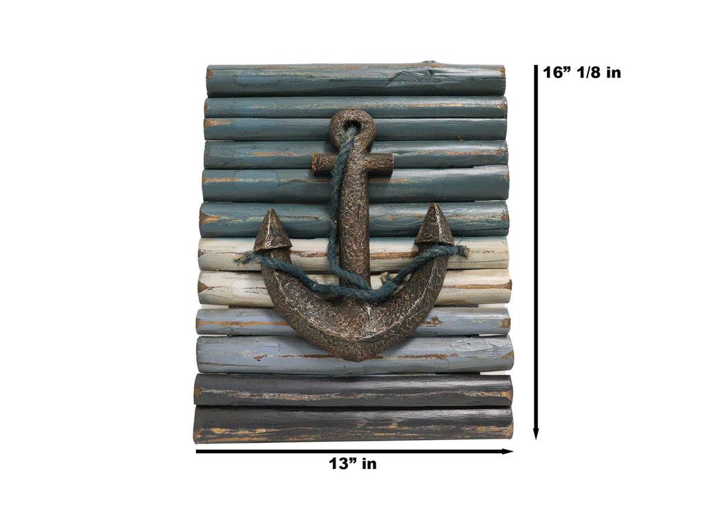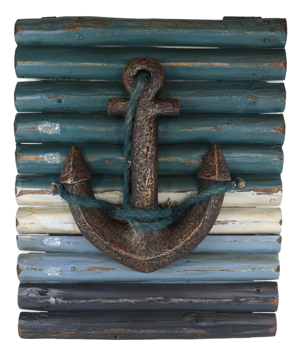 Rustic Beach Nautical Marine Ship Anchor With Ropes Wood Panel Wall Decor Plaque