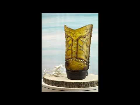 • This western decoration is always a sensation for cowboys or lovers of the wild west. This decorative desktop or table lamp adds a well lit frontier touch to any room decorated with Western or Southwest themed home accents. A yellow shade acrylic resin cowboy boot houses the light and when switched on, will produce a glowing amber yellow light for a cozy warm ambiance.