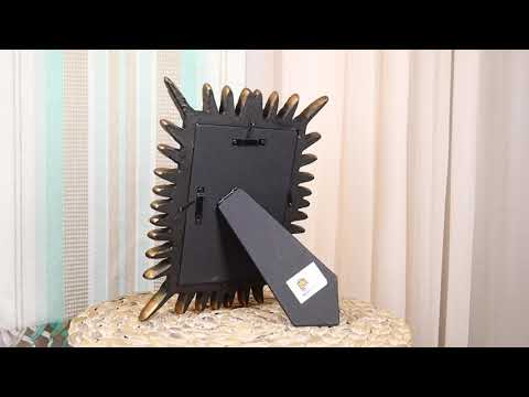 • A truly unique picture frame that will hold your 5x inch photos, the photo frame is bursting with golden gun bullets from all sides. Convenient easel for desktop display as well as mounting ridges for wall display. Design allows for both horizontal and vertical photo display.