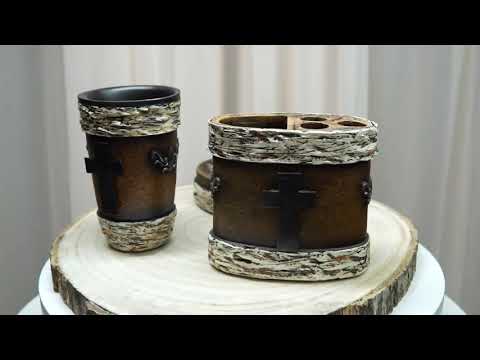 Ebros Rustic Western Cross With Birchwood Accent Soap Dish Toothbrush Holder Cup Set