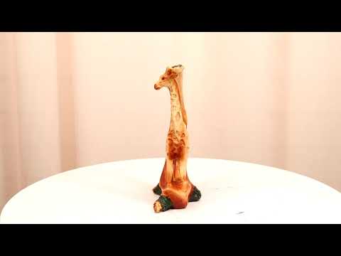 Safari Savannah Giraffe Standing Figurine In Faux Wood Cutout Carving Finish