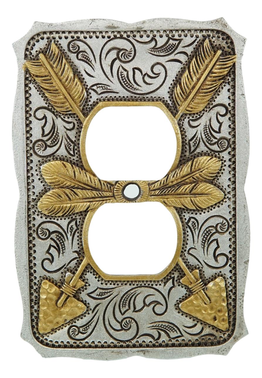 • These Golden Navajo Crossed Arrows Wall Electrical Cover Plates are made of polyresin, hand painted and polished individually. Because it is a resin product, it can crack if you over-tighten with the screw driver.