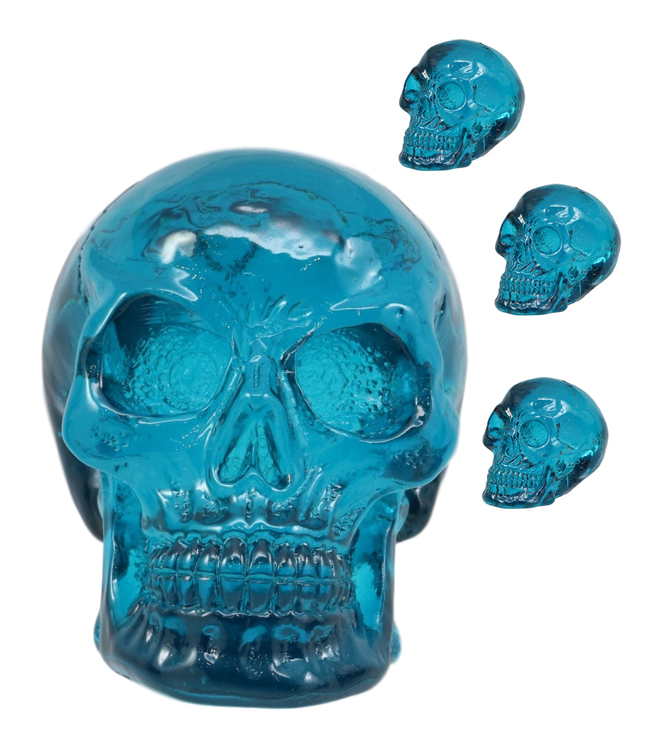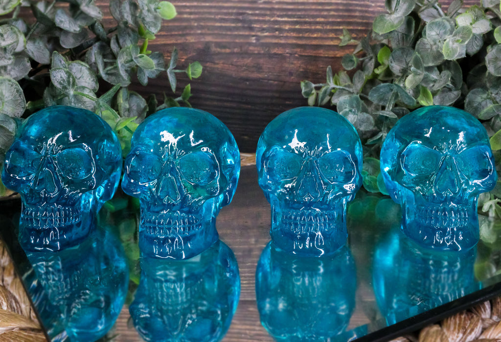 Ebros Set Of 4 Blue Translucent Witching Hour Gazing Skull Acrylic Miniature Figurines
