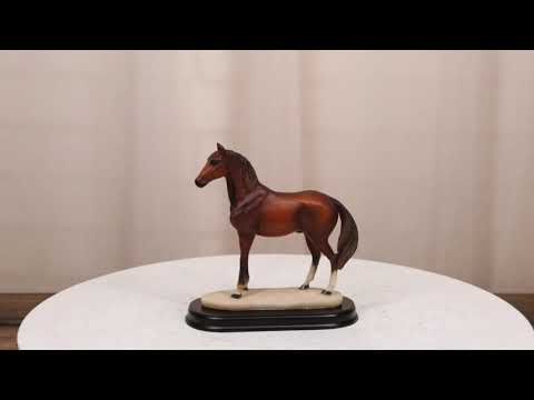 • This sculpture showcases the thoroughbred pride of the equestrian family. Beautifully sculpted and painted, this figurine accentuates the Chestnut Brown Horse in all of its natural beauty. It makes a wonderful sculpture to display on any desks, shelves or what have you.
