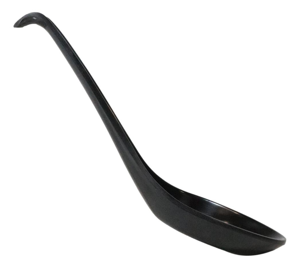 • Infuse your dining area with variety and style using this black melamine soup spoon. With its single tone semi glossy black color, this chic spoon will bring a contrasting elegant color to any dish.