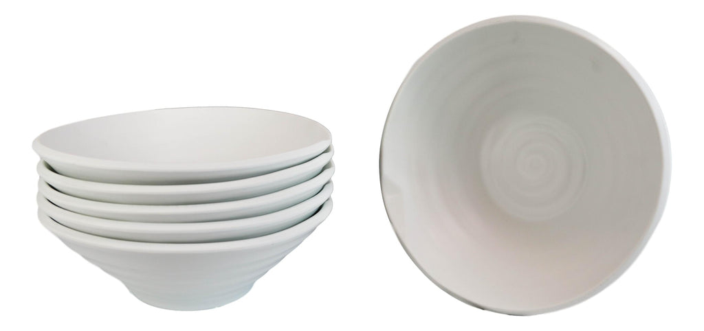Set Of 6 Irregular Ridged Matte White Melamine Pasta Salad Soup Large Bowls