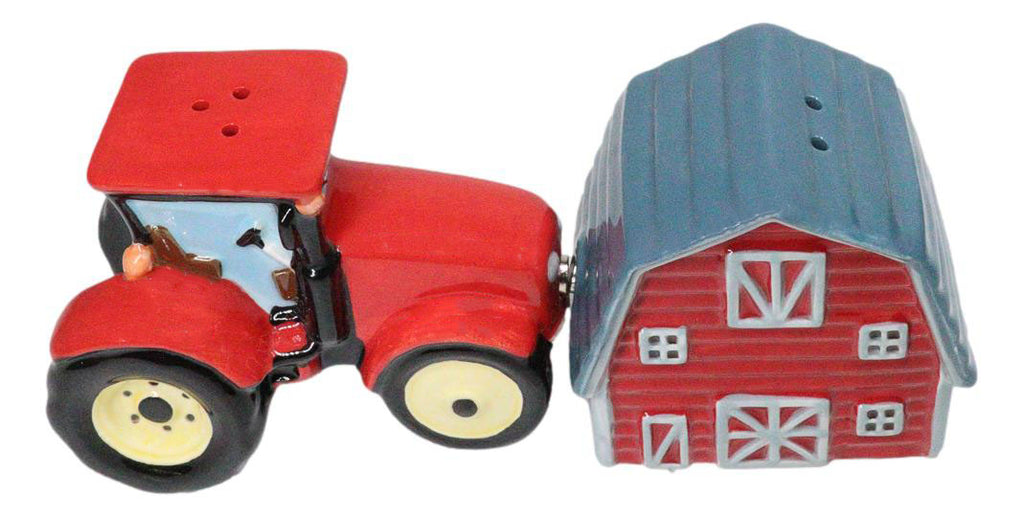 • This Barn And Tractor Salt And Pepper Shakers set measures about 2.25"High, 3" Wide and 1.75"Deep each approximately. They weigh altogether 4 ounces. • This Barn And Tractor Salt And Pepper Shakers set is made of ceramic, hand painted and polished. Color tone may vary slightly from pictures. • Bring classic rural charm to your table with the Ceramic Red Barn and Red Tractor Salt and Pepper Shakers Set. Beautifully crafted with nostalgic farmhouse details, this delightful duo features a vibrant red barn paired with a matching red tractor for an authentic country look. Both functional and decorative, they add warmth and character to kitchens, dining tables, and farmhouse décor. Perfect as a gift for farm lovers, country living enthusiasts. • Props in photos are not included with the items.