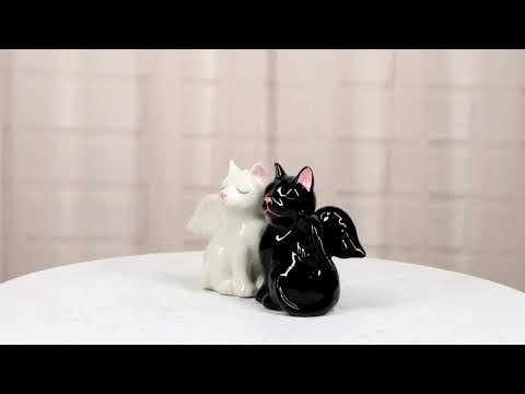 Ceramic Black White Angel Kitty Cats Devil Or Angel Salt And Pepper Shakers Set