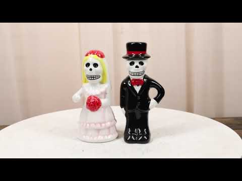 • This day of the dead wedding couple salt & pepper shaker set is made of high quality glossy ceramic, hand painted and polished.