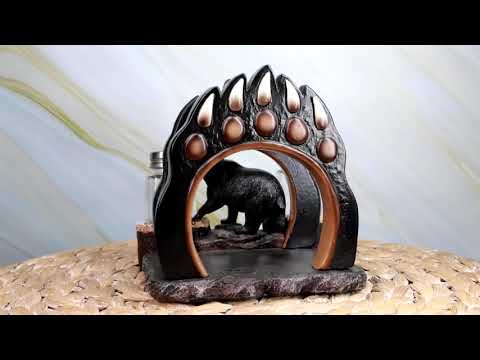 Ebros Animal Totem Black Bear Paw Napkin and Salt Pepper Shakers Holder Statue