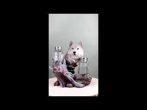 Ebros Full Moon Lone Alpha Gray Wolf Glass Salt & Pepper Shakers Holder Decor