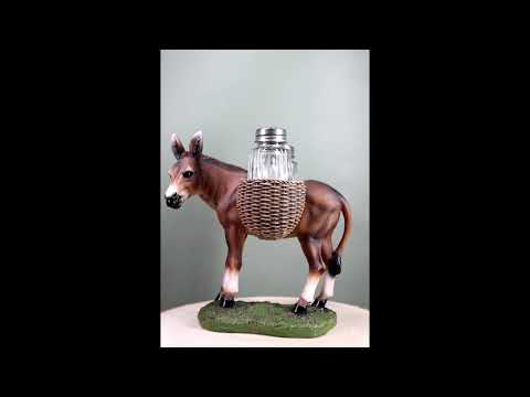• This Farm Themed Mule Salt And Pepper Shakers holder figurine is Made of cold cast resin, hand painted and polished. Color tone may vary.