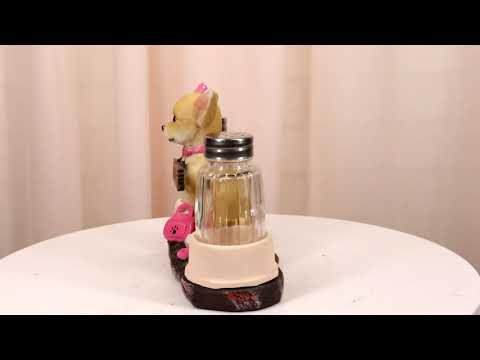 • This Girl Teacup Chihuahua salt pepper shaker set is made of high quality polyresin, hand painted and polished. They are equipped with two glass shakers as pictured without the condiments.