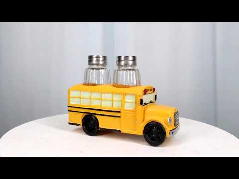 • Display this figurine at your table and at the same time use it as a salt and pepper container! This school bus spice shaker set will grace your dining area and it will make a great table centerpiece for any party!