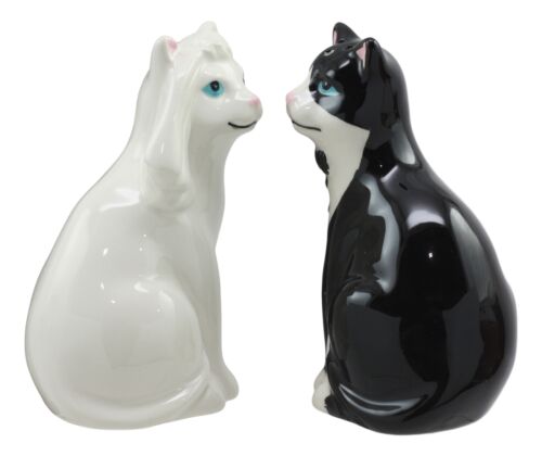 • This Black and White Wedding Cats salt and pepper shaker set is made of high quality glossy ceramic, hand painted and polished.
