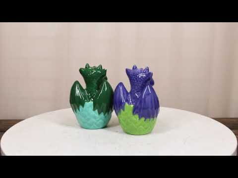 • This Dragon Hatchlings In Eggs Salt And Pepper Shakers Set is made of high quality glossy ceramic, hand painted and polished individually.