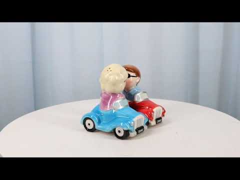 • This Kissing Couple In Their Colorful Cars Salt & Pepper Shakers set is made of high quality glossy ceramic, hand painted and polished individually.