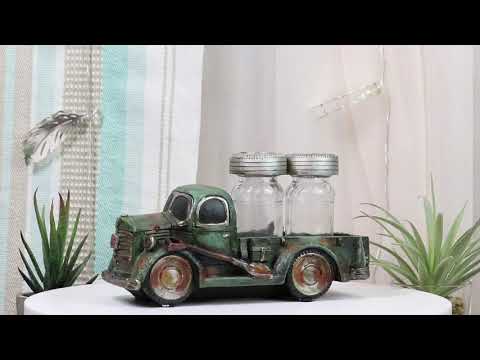 Ebros Old Fashioned Vintage Green Pickup Truck Figurine Holder W/ Salt Pepper Shakers