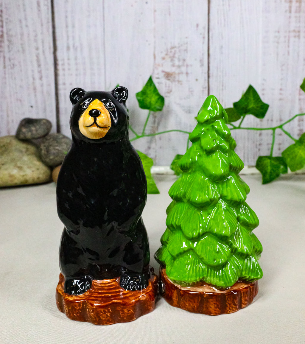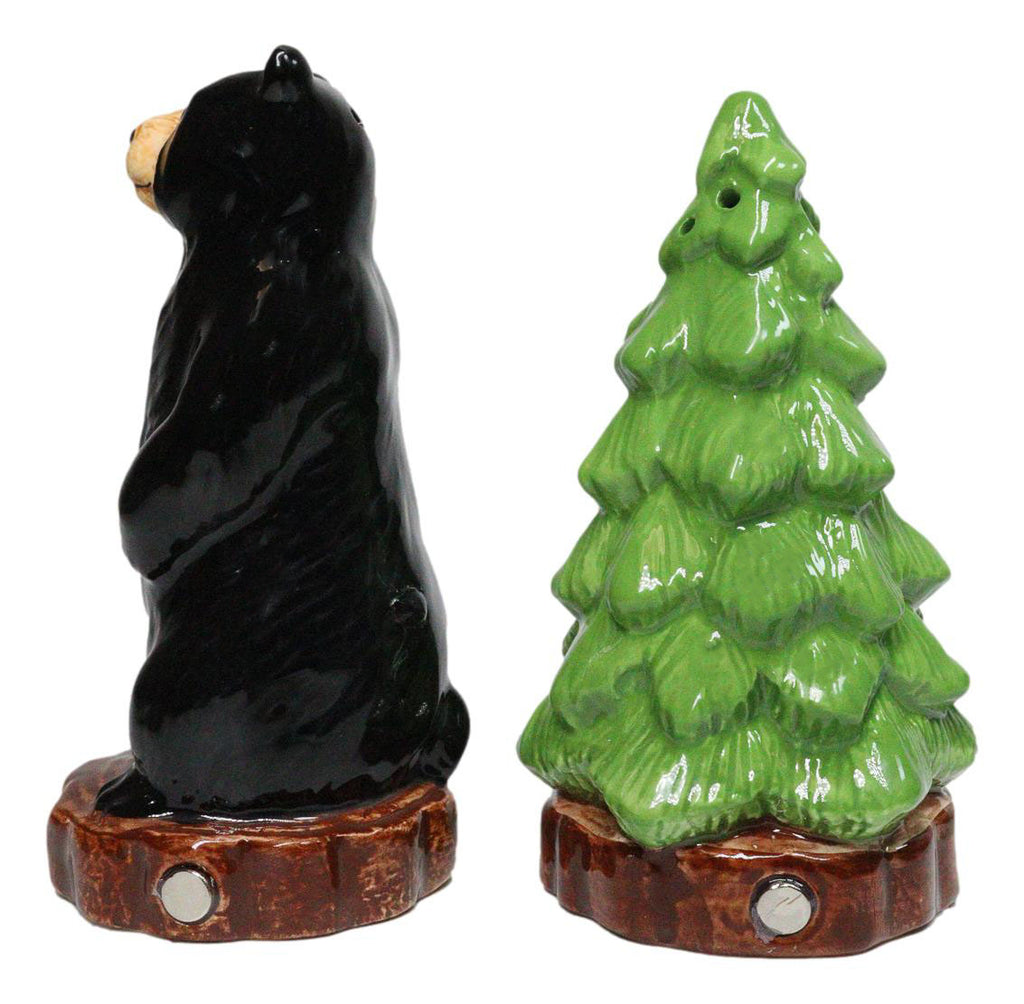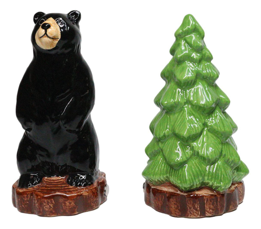 • This Black Bear And Pine Tree Salt And Pepper Shakers Set is made of high quality glossy ceramic, hand painted and polished individually. • This Black Bear And Pine Tree Salt And Pepper Shakers Set measures approximately 4.25" tall, 2.5" wide and 2.5" deep each. The set weighs about 4 ounces. • Add some flair to your kitchen and dining setup with this awesome salt pepper shaker set. • Bring woodland charm to your table with the Black Bear and Pine Tree Ceramic Salt and Pepper Shakers Set. Featuring a charming black bear paired with a classic pine tree, this ceramic duo captures the cozy spirit of the forest. Both decorative and functional, they're perfect for cabins, lodges, rustic kitchens, or nature-inspired décor. A thoughtful gift for wildlife lovers and outdoor enthusiasts, this set adds warmth, character, and a touch of the great outdoors to every meal. • Props in photos are not included with the shakers.