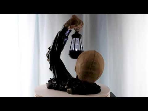 • The Graveyard Skeleton Statue is solar powered and the lantern has an On/Off Switch at the bottom side of the lantern. The lantern will automatically come on in the absence of light. Although the battery sockets show two possible placements of battery, the lantern unit only needs one battery (provided with the lantern).