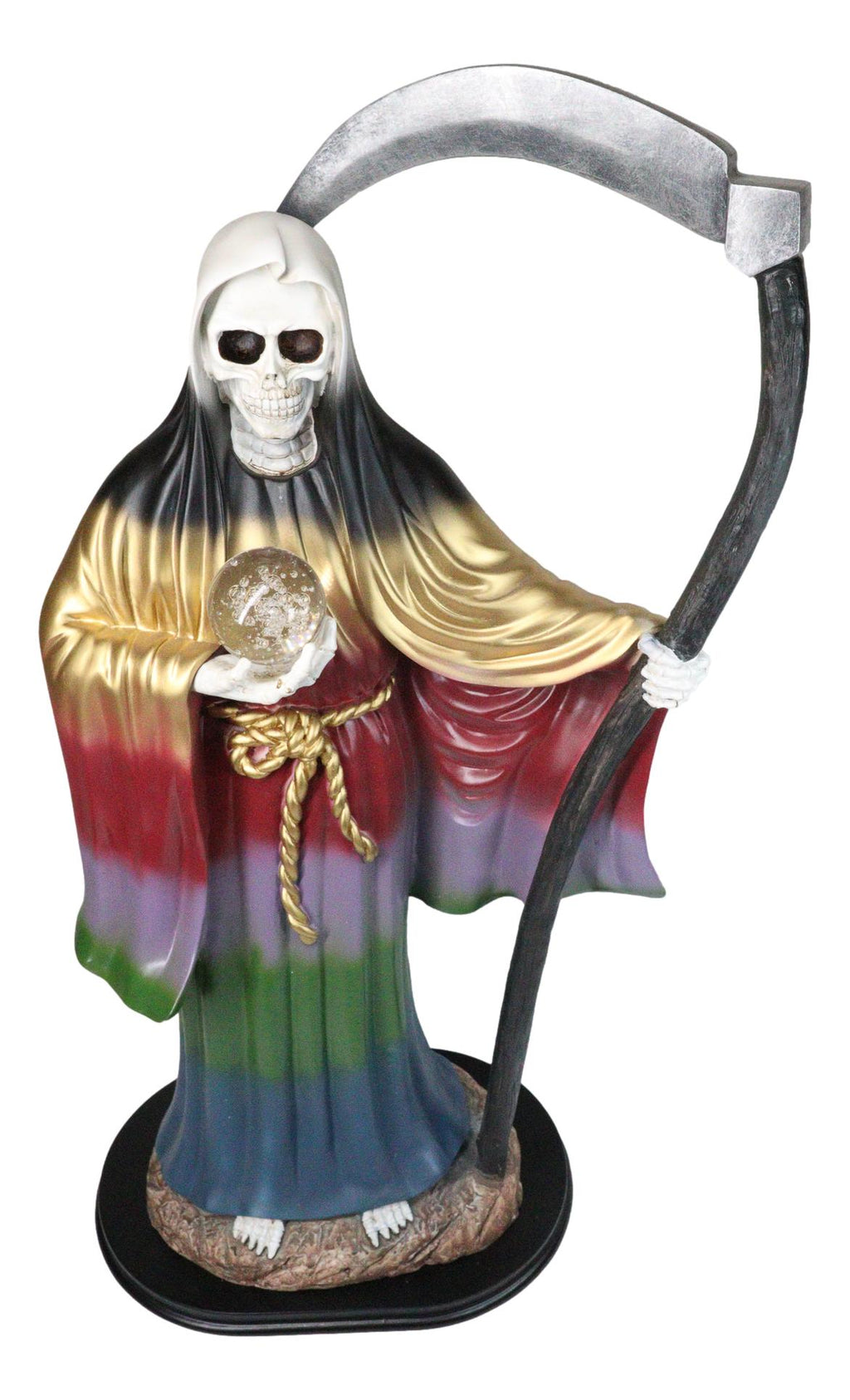 Large 2 Feet Tall Holy Death Santa Muerte Holding Scythe In Rainbow Robe Statue