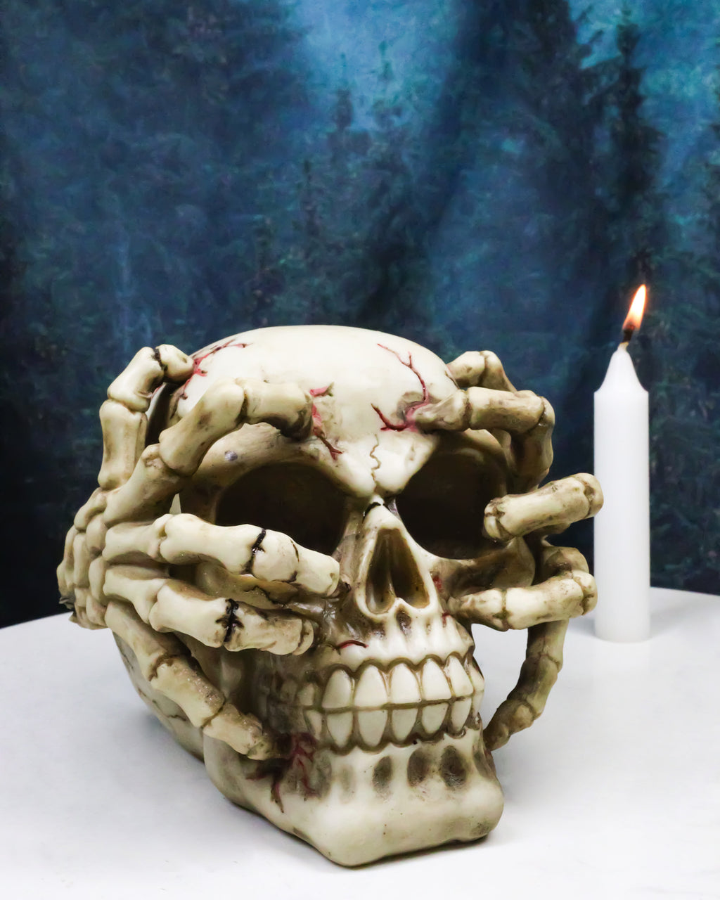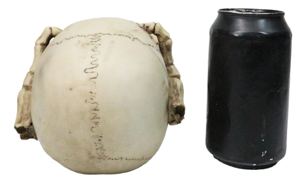 • This Skull With Skeleton Claws figurine is made of polyresin, individually hand painted and polished. • This Skull With Skeleton Claws figurine measures 6" long, 4.5" tall and 5.25" wide approximately. It weighs about 1 pound. • Add a chilling edge to your spooky décor with the Ossuary Skull With Claws Figurine. This eerie piece features a sinister skull ruptured by bony skeleton claws, with gruesome detail that brings out the horror of a seething bloody cranium. Perfect for haunted houses, Halloween parties, or year-round collectors of dark gothic art, this figurine creates an unsettling focal point that's sure to grab attention. A must-have for those who embrace the macabre and love bone-chilling decorations. • Props in photos are not included with the item.