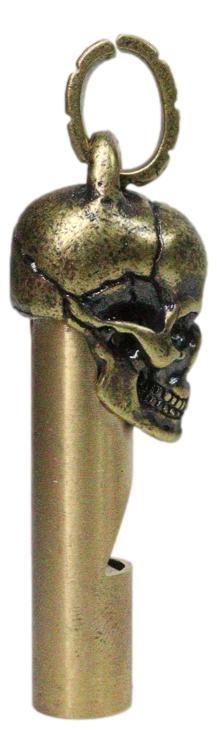 • This Skull Death Whistle measures 2.25" Tall, 0.75" Long and 0.5" deep approximately. The skull weighs about 1 ounce. • This Skull Death Whistle is made of brass and steel alloy. Made of premium material, the whistle is solid and durable. With loud sound, it is suitable for outdoor sports, like hiking, camping, climbing, etc. • Elevate your personal style and safety with our Brass Skull Whistle - a unique and intriguing accessory that's both fashionable and functional. Crafted from high-quality brass, this whistle not only showcases a captivating skull design but also serves as a reliable and loud signaling device. Whether you're an adventurer, a fashion-forward individual, or simply someone who appreciates distinctive accessories, the Brass Skull Whistle is a must-have addition to your collection.