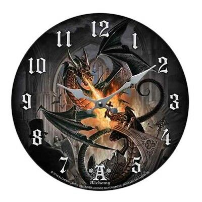 • This Round Wall Clock is a Licensed Artwork by Artist Alchemy Gothic England 1977 • This Round Wall Clock's diameter is 13.25" (inches) • This Round Wall Clock is Made of Composite Wood With Printed Laminate • Requires AA Batt (not included). Has two dials / minute hand size: 5.11" approx / hour hand size: 3.5"approx Requires batteries (not included)