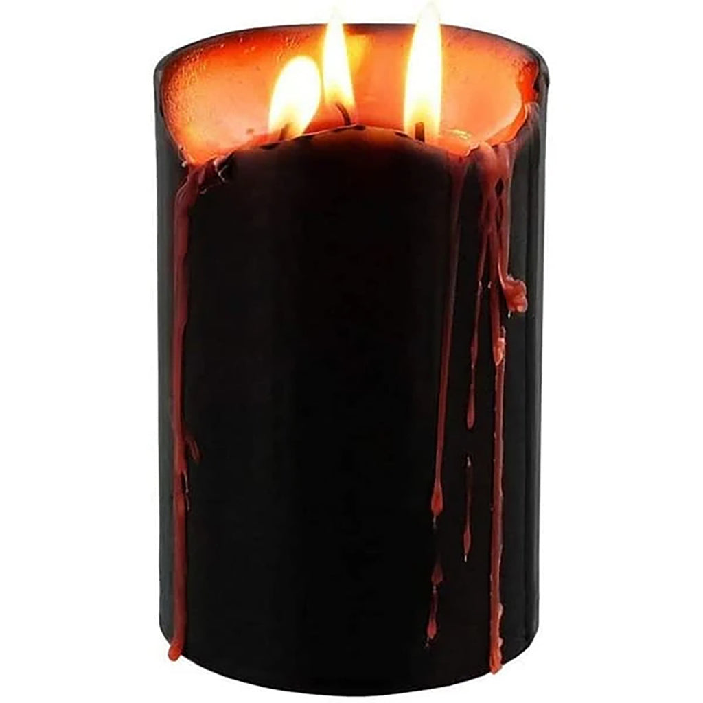 • This Vampire Tears Pillar Candle is made of paraffin wax. • Approximate Burn Time 15 hours. Please practice caution when burning and never leave lit candle unattended. • Candle Dimensions: 6" high and 3" diameter. It weighs about 1.25 pounds. Made in India. • Want to bring a dark, enchanting vibe to your space this season? Meet our Vampire Tears Pillar Candle. Standing 6 inches tall and crafted from paraffin wax, this striking candle adds an instant gothic accent to any room. Once lit, vivid blood-red wax slowly melts and drips down the sides, creating a hauntingly beautiful glow that sets the mood all night long. • Props in photos are not included with the item.