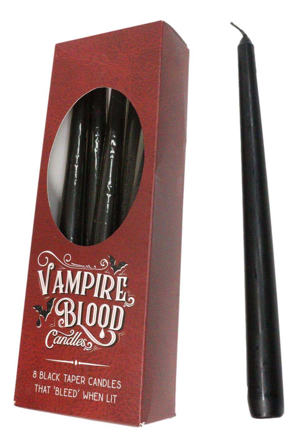 • Pack of 8 taper candles for use with rituals to attract supernatural powers into your physical realm. Measuring 10"H and 1" Base Diameter. • These wax-based tapers are the perfect addition to your gothic decor, casting an enchanting spell wherever they flicker. • Up to 2 hours of candlelight per burning. Blood-red wax drips for a hauntingly beautiful glow • From romantic candlelit dinners to haunting ambient décor, our Vampire Blood Taper Candles captivate with their dramatic, dripping "bleeding" wax effect. Styled in bold black and red, these tapers look especially striking displayed in an ornate candelabra as warm wax cascades down the sides. Sold in boxes of 8, each candle offers an approximate 2-hour burn time and is crafted from unscented paraffin wax. Always protect surfaces before use and never leave burning candles unattended. • This listing comes as a pack of 8 candles.