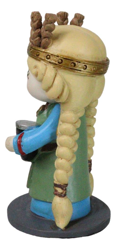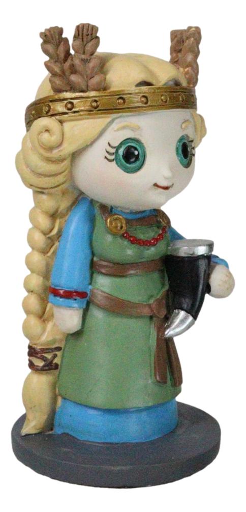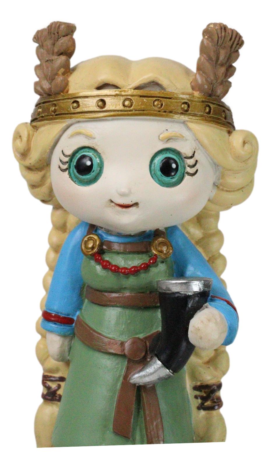 • This Norsies Sif figurine measures 3.75" tall, 2.25" long and 2" wide approximately. • This Norsies Sif figurine is made of designer composite resin, hand painted and polished. It is a perfect sit up figurine for your collection or a gift for a loved one! • The Norsies Collectible is a resin figurine featuring the signature god, heroes and villains of the Norse Viking Mythologies. This one depicts the Goddess of Sif who is a golden-haired goddess associated with earth, fertility, family and wedlock. In both the Poetic Edda and the Prose Edda, she is married to the thunder god Thor.