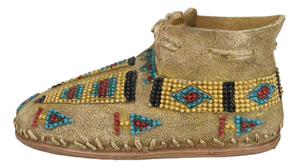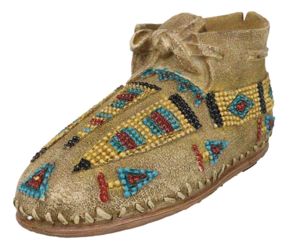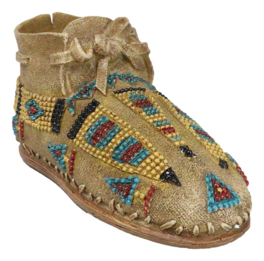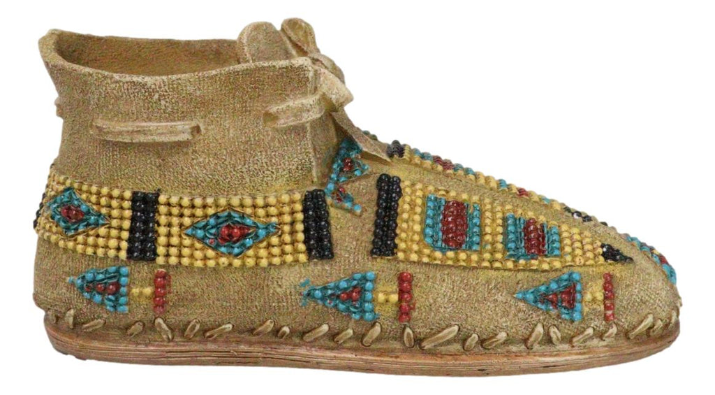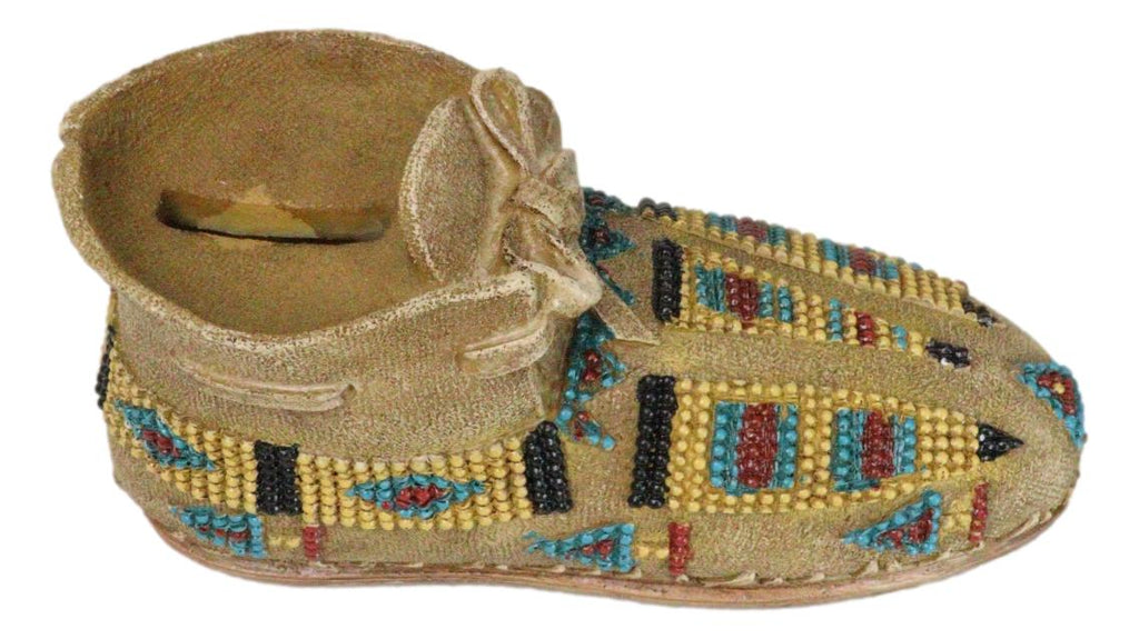 • This Moccasin Shoe money bank sculpture is made of high quality polyresin, hand painted and polished individually. • This Moccasin Shoe money bank sculpture measures approximately 3" High, 6.5" Wide and 3" Deep. It weighs about 10 ounces. • Introducing the Indian Moccasin Shoe Shaped Money Bank, a unique and culturally rich piece that combines practicality with artistic heritage. This beautifully crafted money bank is shaped like a traditional Native American moccasin shoe, symbolizing the connection to nature and the spirit of the land. Adorned with intricate designs and motifs representing various animal spirits, this money bank captures the essence of Native American culture and spirituality. • Props and coins in photos are not included with the item.