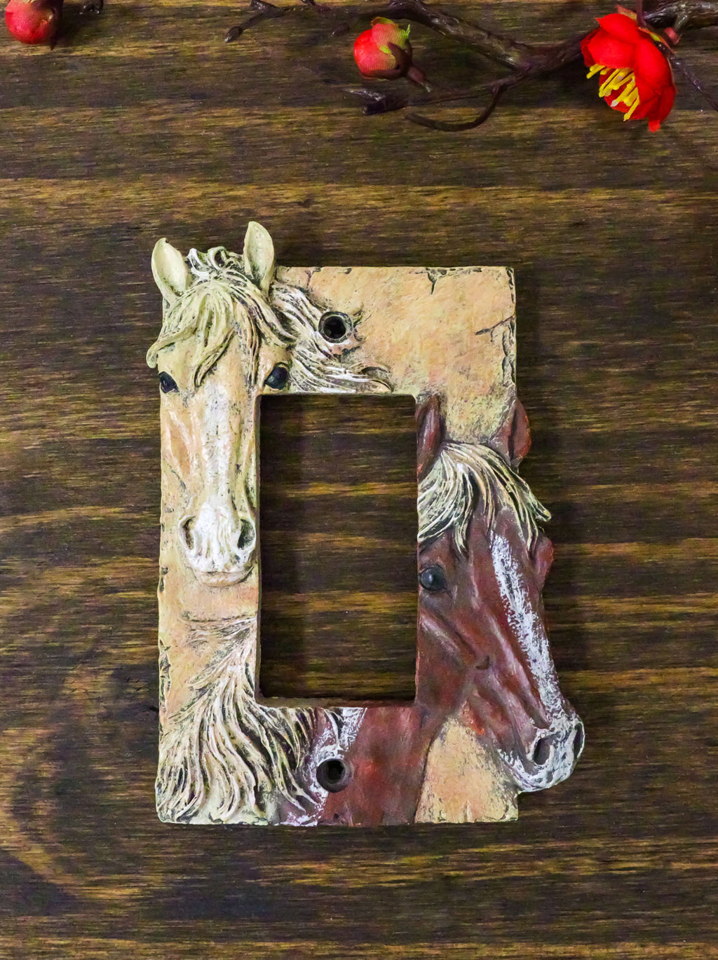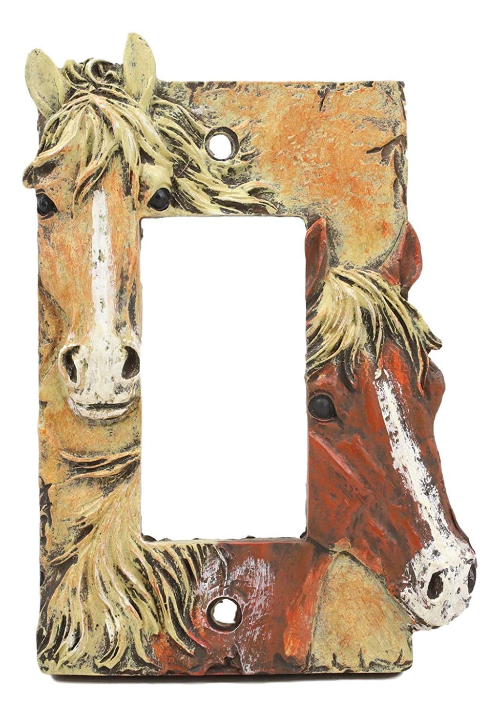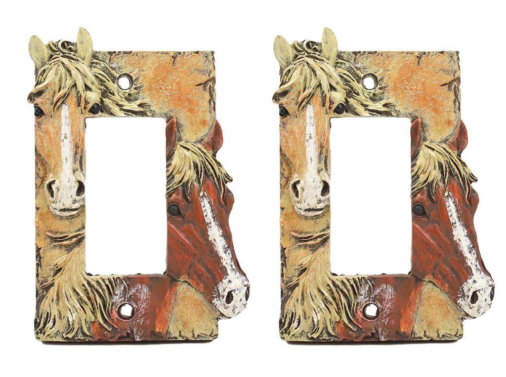 Ebros Rustic Western Chestnut Palomino Horses Single Gang Rocker Switch Cover Set Of 2