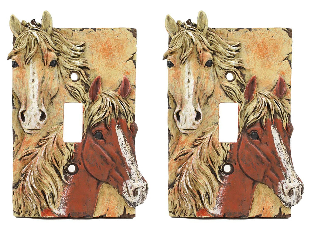 Ebros Rustic Western Chestnut Palomino Horses Single Toggle Switch Plate Cover 2pc Set