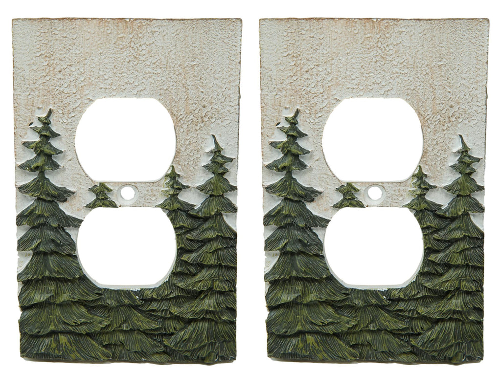 Ebros Rustic Evergreen Pine Trees Forest 2-Pack Double Receptacle Outlet Wall Plate