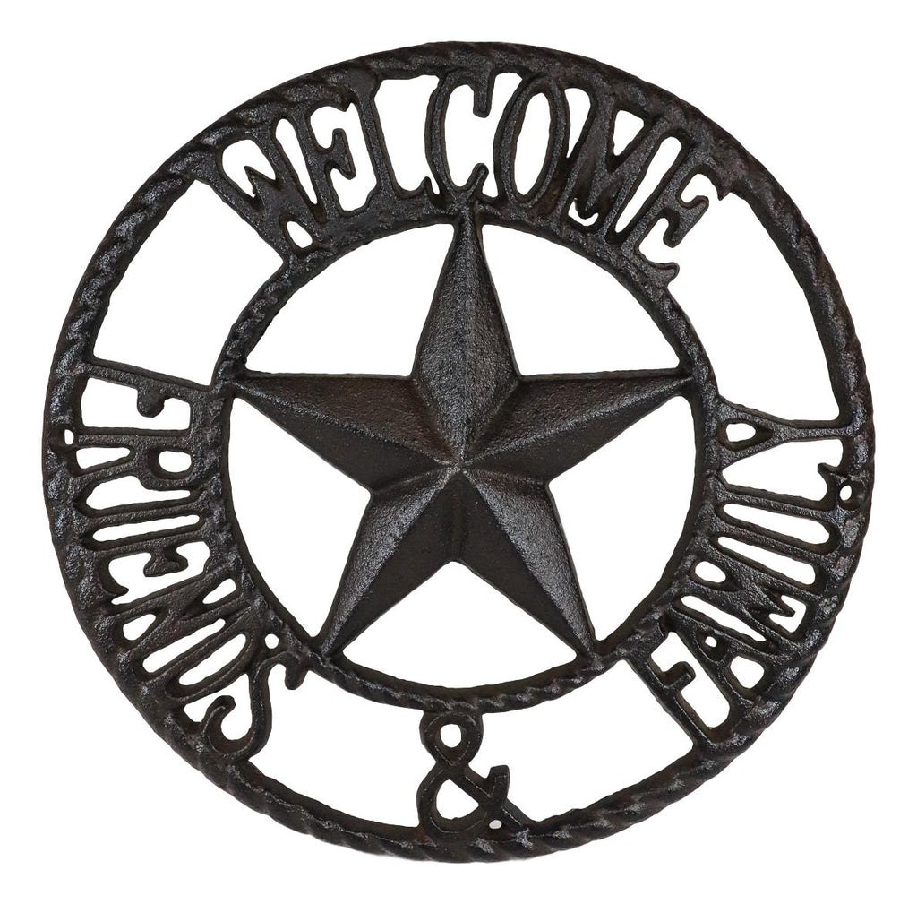 Ebros 10" D Rustic Cast Iron Welcome Family & Friends Wall Sign Western Star Circle